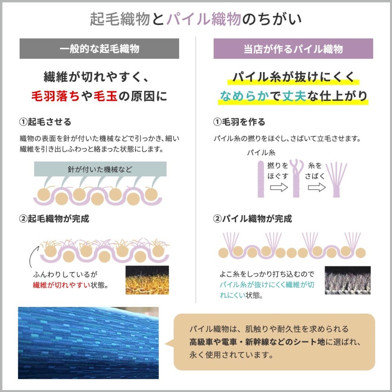 ・初めのうちは御使用中及びお洗濯中に遊び毛羽が脱落しますが、次第におちつきます。